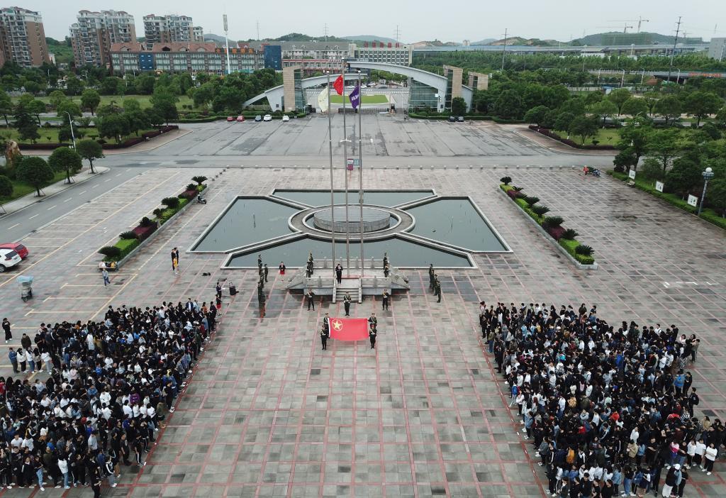 5月20日,湘杏学院含浦校区全体同学于湖南中医药大学含浦校区南门国旗台参加以“青春旗帜·青春心向党 ,建功新时代”为主题的升旗仪式,湘杏学院党委书记王文波、湘杏学院院长谢辉、党委副书记毛芳武以及学生科老师参加此次活动。