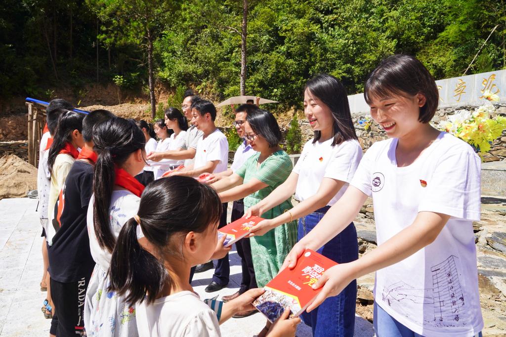 在浏阳市大围山,师生们肩扛锄头脚踩泥土遍行山路,沿途收集各种药用植物。户外采药之余,师生们与当地老人共同制作中医特色香囊,并细心为老人讲解香囊药物的名称、功效和使用方法,现场其乐融融。在衡阳县,师生党员来到夏明翰故居,瞻仰革命先烈,重温入党誓词。在西渡镇溪江乡友谊村,志愿者走访了12户年老体弱、行动不便的留守老人,为村民进行免费体检。