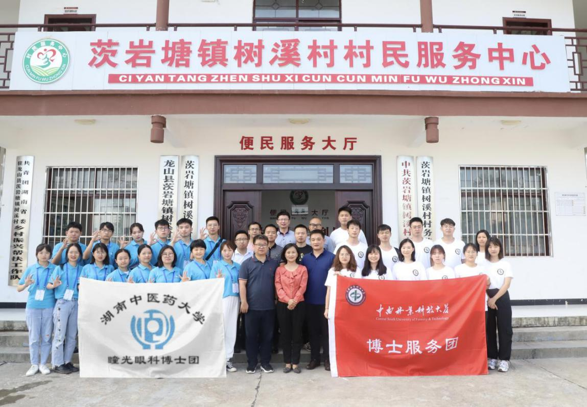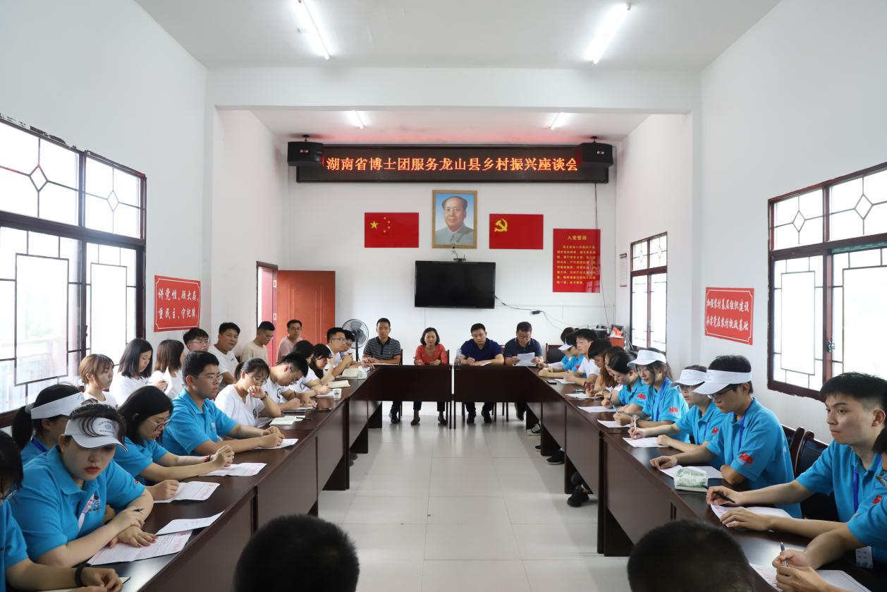 2021年7月19日下午,团省委学校部部王虹彬一行抵达龙山县茨岩塘镇树溪村,联合我校与中南林业科技大学博士团一同参与“湖南省博士团服务龙山县乡村振兴座谈会”。