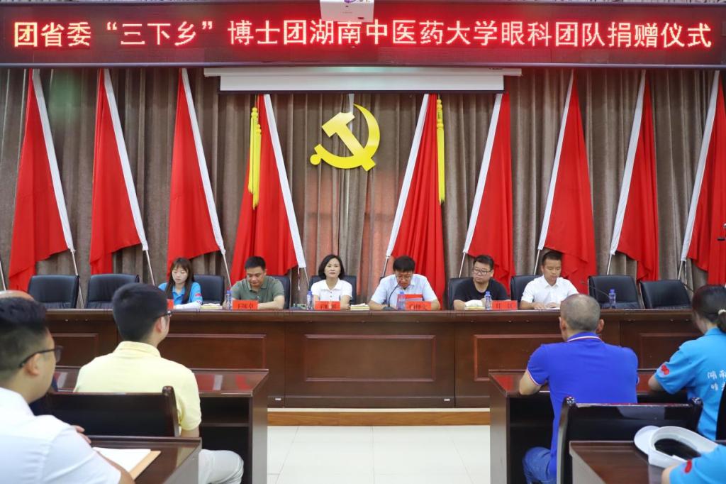 7月20日上午,共青团湖南省委学校部与湖南中医药大学瞳光眼科博士团在茨岩镇政府举行“共贺建党百年,护眼医路瞳行” 湖南中医药大学瞳光眼科博士团服务乡村振兴社会实践活动启动、捐赠仪式。