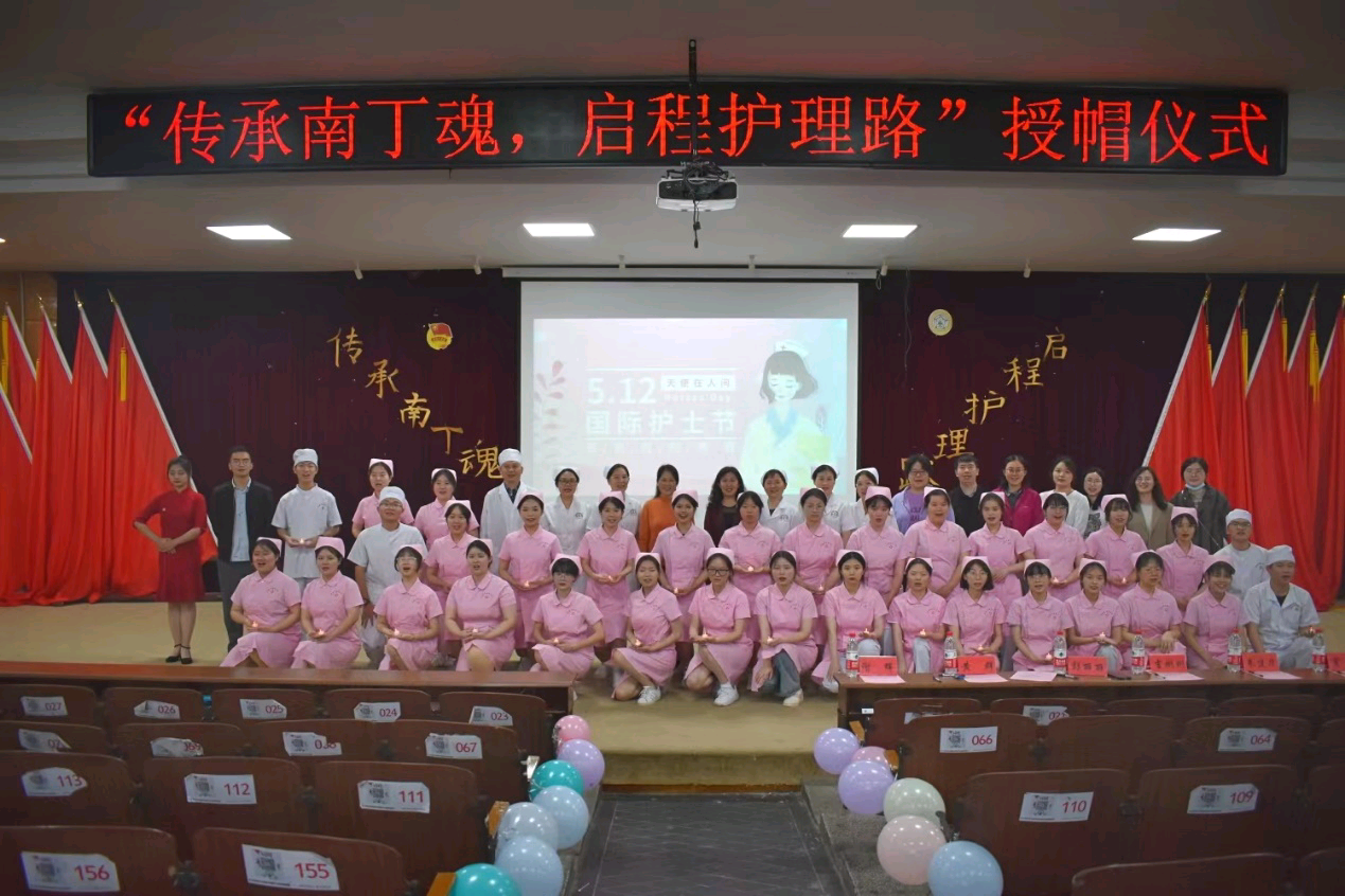 为迎接党的二十大胜利召开,庆祝共产主义青年团成立一百周年,进一步引领广大青年坚定跟党走,建功新时代,提高护理专业学生职业责任感,规范护士行为,我院于2022年5月12日中午12:30在学术报告厅举办了 “传承南丁魂 启程护理路”第十届护理授帽仪式。护理学院彭丽丽、吉彬彬、朱建华、霍依、万伟平、陈红涛六位老师为我院护理专业学生代表授帽,湘杏学院院长谢辉老师、副院长黄群老师,教务科、学生科老师代表和2020级护理学专业学生代表参加本次活动。