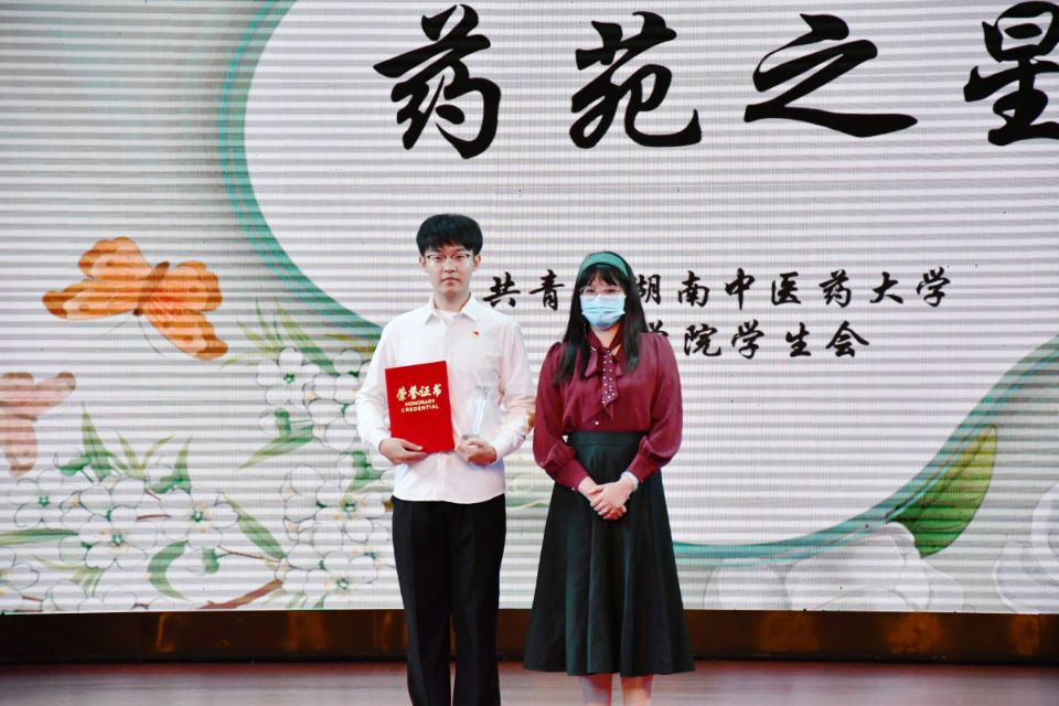 “人不率则不从,身不先则不信。”习近平总书记在众多场合强调了榜样的重要性。为激励同学们展示才华,选出榜样,弘扬榜样精神。湖南中医药大学药学院于2022年5月19日18:30在大学生活动中心成功举办了第十四届“药苑星月寄望,群英踏浪而行”药苑之星评选活动。湖南中医药大学药学院党委书记曹一瑜老师、湖南中医药大学药学院副院长王炜老师、湖南中医药大学药学院副院长杨岩涛老师以及学生科全体老师一同出席了本次活动。