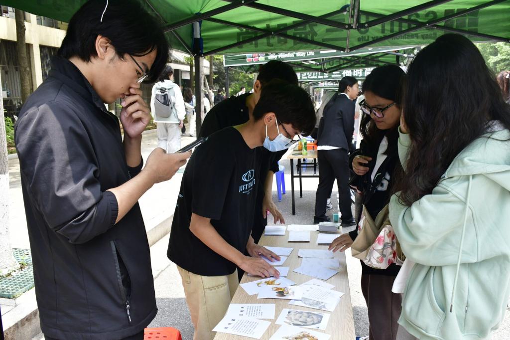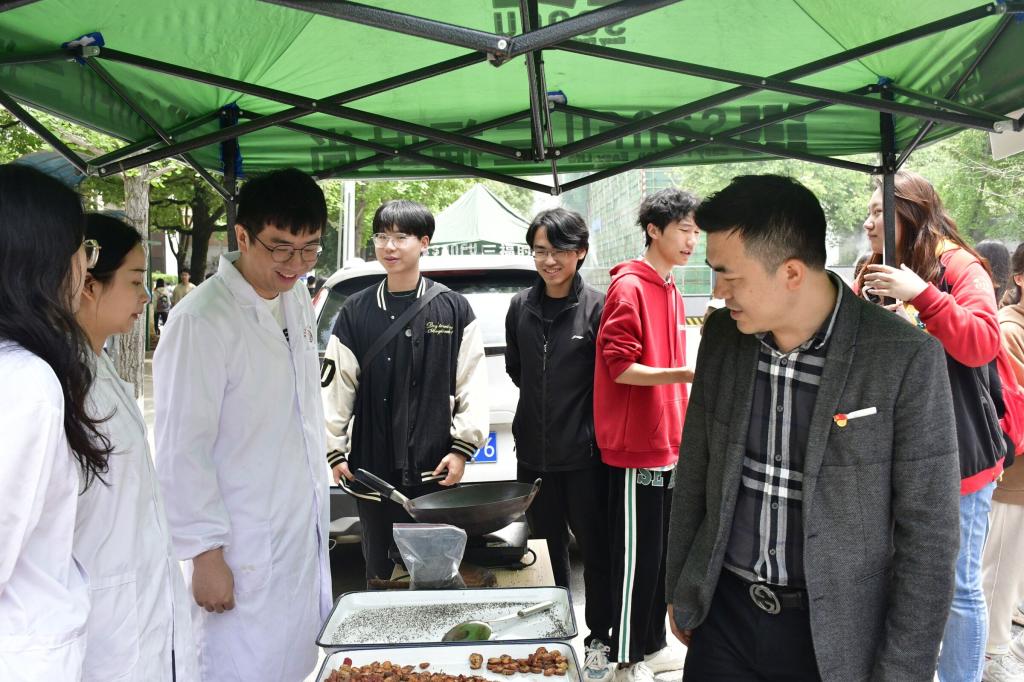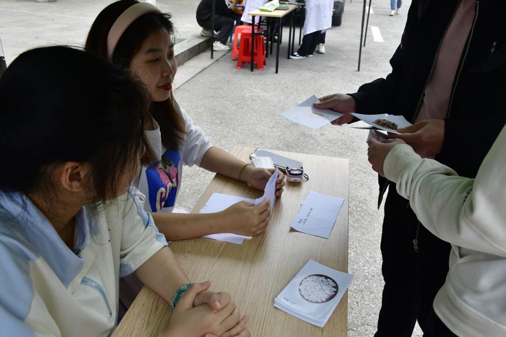 在学生公寓六、七栋之间,同学们设立了不同的地方展区,将各自地方独特的中草药知识以精美卡片的形式呈现,展现了中华大地悠久的中草药历史和百家争鸣,百花齐放的中草药文化。活动现场,老师们也积极参与其中,教导同学们如何进行中药炮制,同学们也可以体验中草药标本的制作,参与现场的小游戏,集章兑换心仪的小奖品,在轻松愉快的氛围中感受中草药文化的魅力。