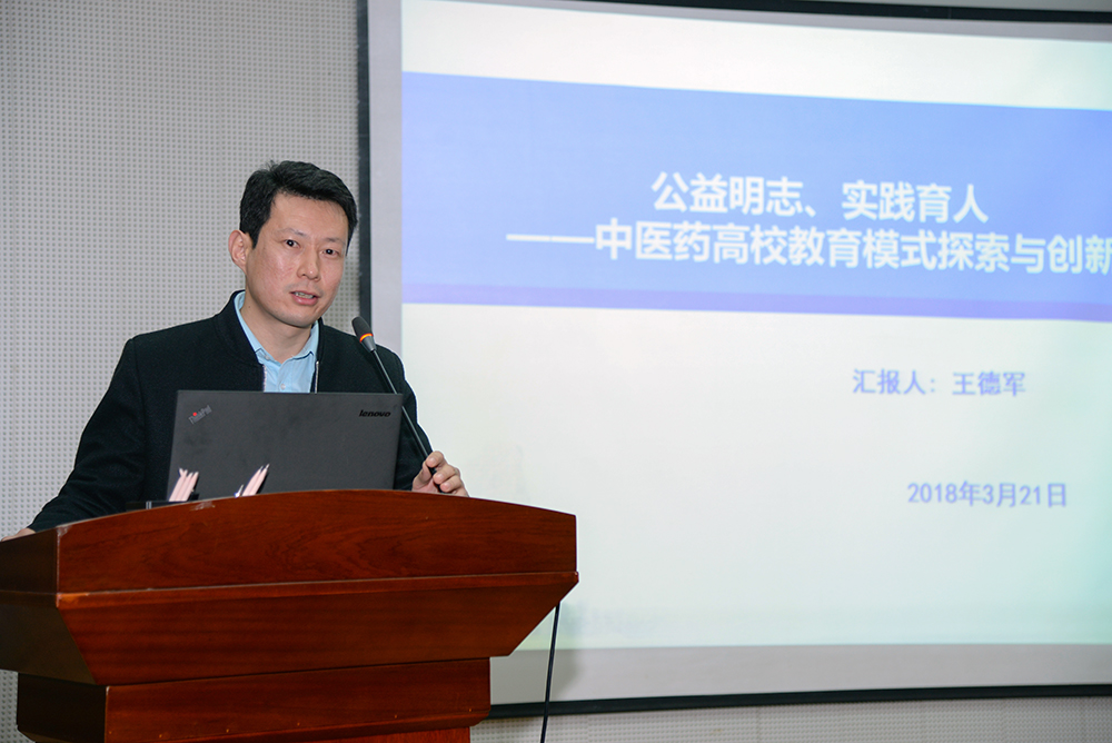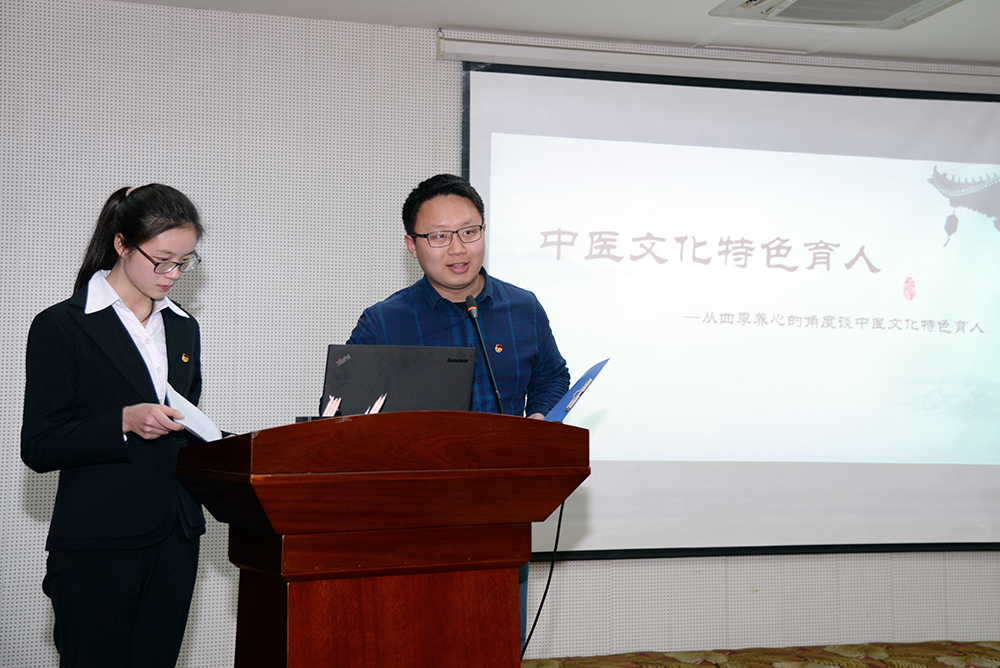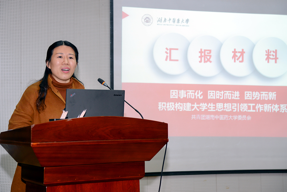 会上,校团委书记焦珞珈以《因事而化 因时而进 因势而新 积极构建大学生思想引领工作新体系》为题作工作汇报;马克思主义学院副院长黄汀作《以“一体四翼”推进习近平新时代中国特色社会主义思想“三进”工作》主题发言;中医学院团委书记成宇骅作《中医文化特色育人》主题发言;青年教师、小儿推拿协会指导老师王德军作《公益明志、实践育人——中医药高校教育模式探索与创新》主题发言;2015级药剂专业学生李世雄展示了题为《走下网络走出宿舍走向操场》的微团课。