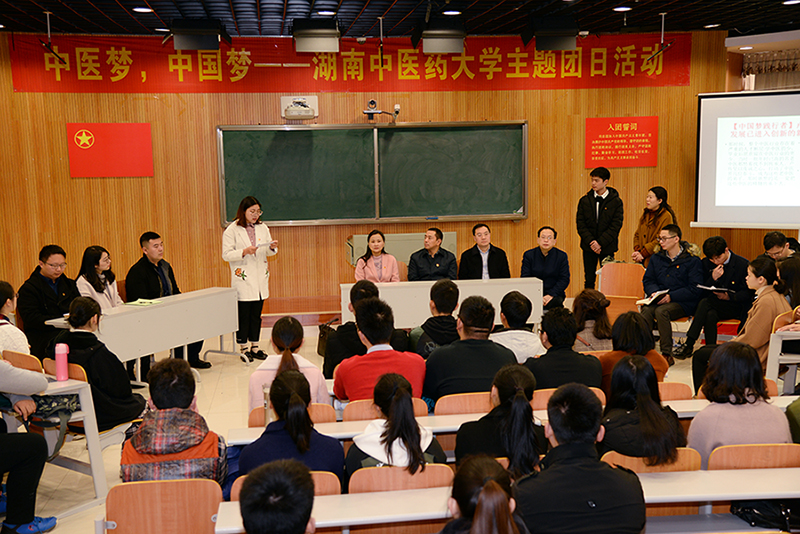 会前,汤立斌一行还参加了我校组织的“中医梦·中国梦”主题团日活动。团日活动指导老师孙相如分享了对“中医梦”的理解并带领青年学生进行热烈探讨。秦裕辉要求同学们真信中医、真学中医、真懂中医,做一个真正的中医人。汤立斌阐释了中医梦与中国梦的关系,勉励大家树立伟大理想,脚踏实地,用实际行动践行责任与担当,展现当代青年的良好风貌。