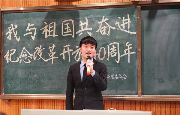 12月10日,我校“庆祝改革开放40周年 我与祖国共奋进”主题演讲比赛决赛在二办一楼多媒体教室举行。校团委负责人、各二级学院团委书记担任大赛评委。