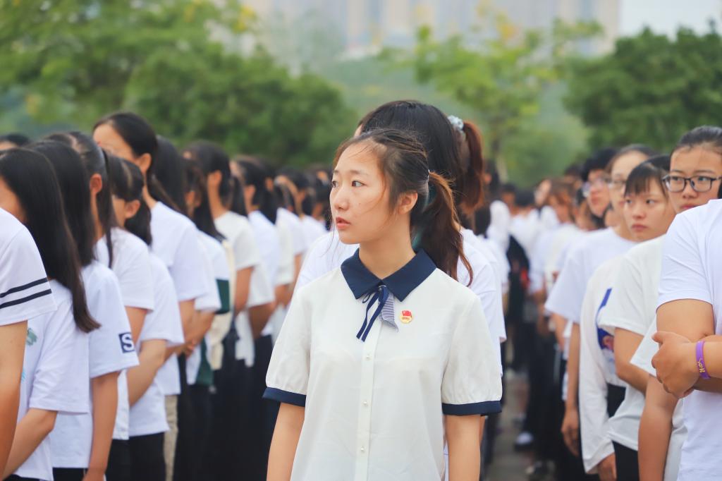 早晨七点,校学生会国旗仪仗队身着戎装,迈着坚定有力的步伐齐步走到国旗台前。全体师生怀着崇敬的心情齐唱国歌,五星红旗冉冉升起。