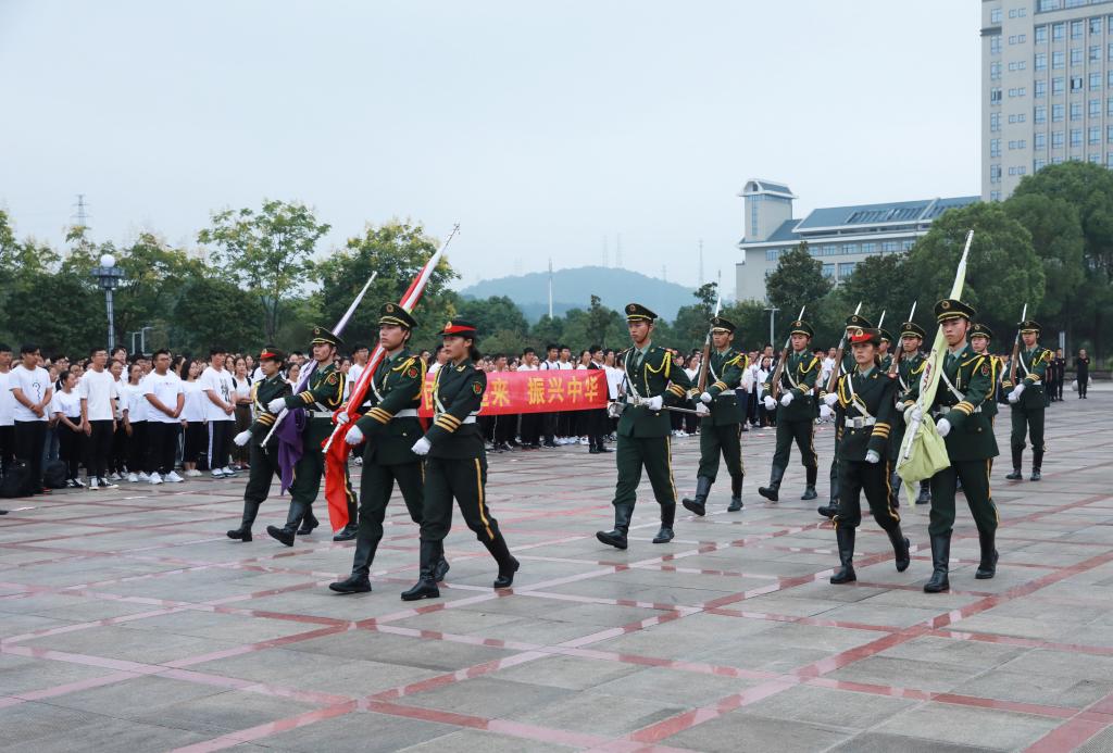 为纪念九一八事变88周年,9月18日,湖南中医药大学在含浦校区南大门广场举行“勿忘九一八,共筑中华魂”升旗仪式。校团委全体老师、团委直属部门及四大学生组织学生代表,以及2019级全体新生参加了升旗仪式。