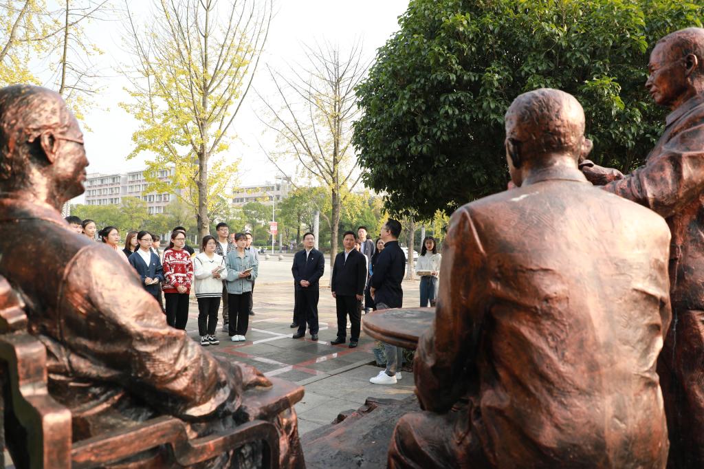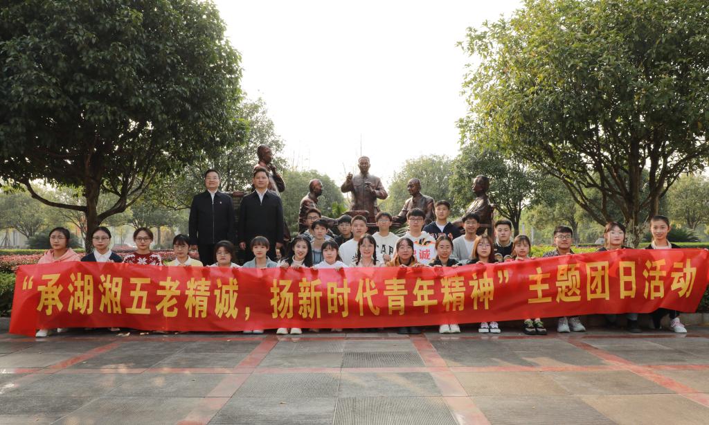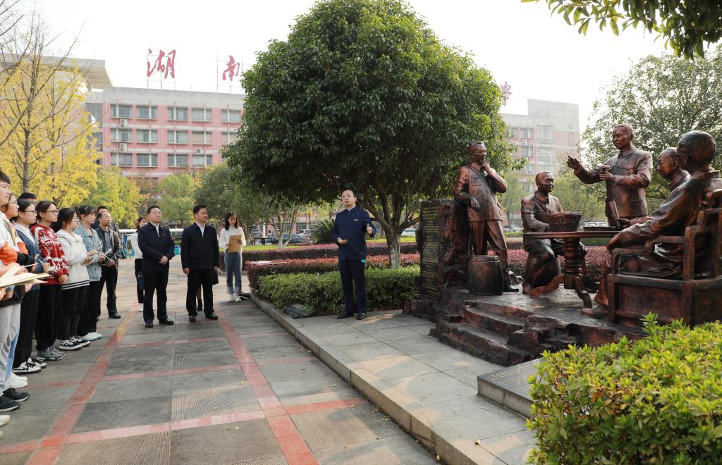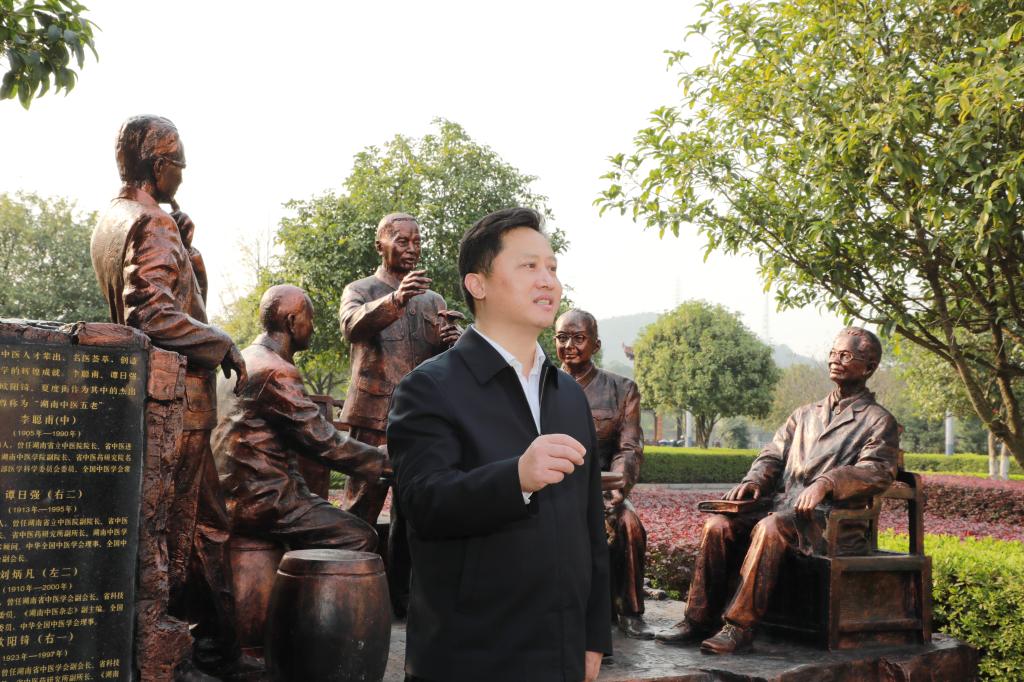 10月27日下午,共青团湖南省委书记李志超一行来到湖南中医药大学,与湖南中医药大学(湖南省中医药研究院)秦裕辉、副校长廖菁一同参加“承湖湘五老精诚,扬新时代青年精神”主题团日活动,本次活动的内容是学习湖湘中医五老的事迹,探讨新时代中医青年如何发扬对党忠诚、对学术虔诚、对病人赤诚、对朋友同事热诚的“四诚”精神。