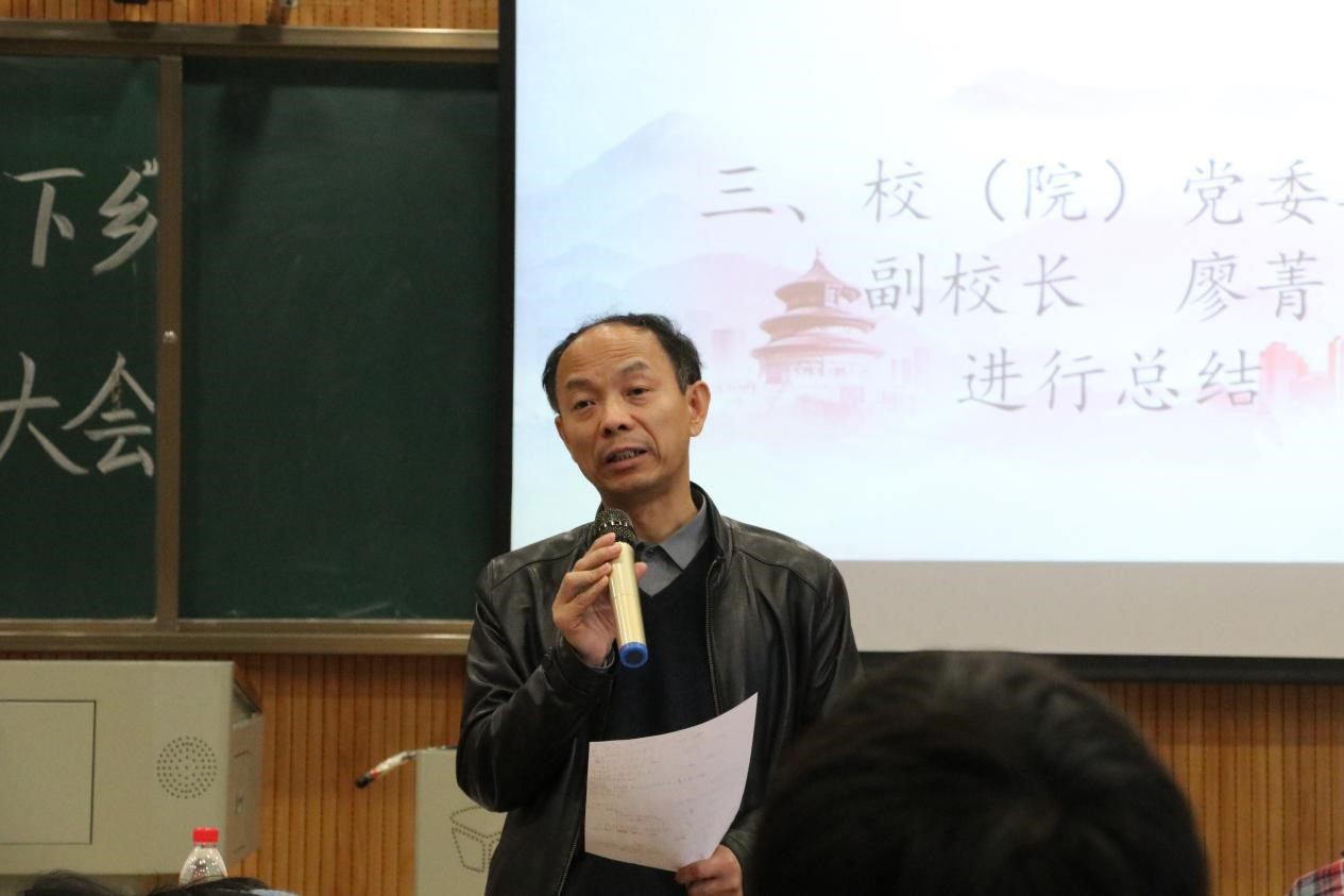 廖菁副校长对各学院实践队伍给予充分认可,鼓励师生以实践为依托,结合专业特色,形成系统成果。2021年校院共组织下乡团队15支,师生志愿者总数达569人,奔赴湖南省张家界桑植县、衡阳市祁东县、浏阳市大围山、怀化市沅陵县、郴州市汝城县、永州市宁远县等28地,共捐赠医疗物资50万余元、生活物资10万余元、医疗科普宣传册及图书千余册。在当地开展了支教、急救技能培训、医疗义诊、红色经典宣讲、健康档案建立等十余项活动,得到了当地政府和居民的一致好评。