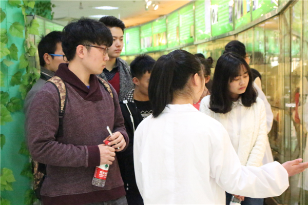 湖南大学KAB成员在校科协讲解队的带领下参观我校中药标本馆