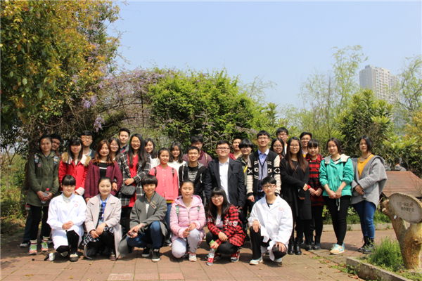 研讨会结束后,KAB俱乐部的同学们来到我校标本馆,大科协讲解队担任标本馆及松霖药植园的讲解。在讲解队的带领下,KAB俱乐部的同学们欣赏到了平时难得一见的各种中草药标本、人体标本,以及种各样鲜活的中药植物。趁着春意盎然,双方同学在松霖药植园留下了珍贵的合影。